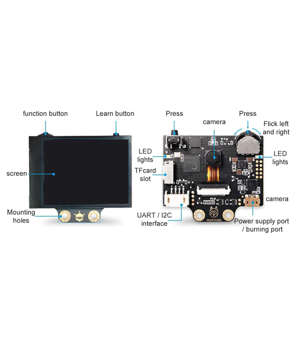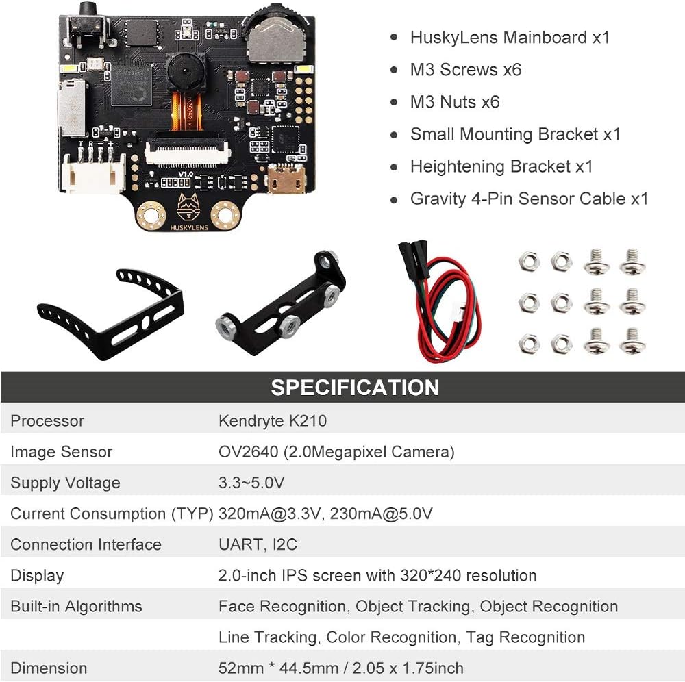 HUSKYLENS عبارة عن كاميرا ذكية مدعومة بالذكاء الاصطناعي (AI Vision Sensor)، مزودة بخوارزميات تعلم عميق مدمجة تتيح التعرف على الوجه، الأشياء، الألوان، العلامات (Tags)، وتتبع الخطوط. تتميز بسهولة الاستخدام عبر واجهة بديهية مع شاشة مدمجة للتحكم والمعاينة. تدعم بروتوكولات اتصال مختلفة (UART, I2C) مما يجعلها مثالية للاستخدام مع أردوينو، Raspberry Pi، و ESP32 في مشاريع الروبوتات والأنظمة الذكية.