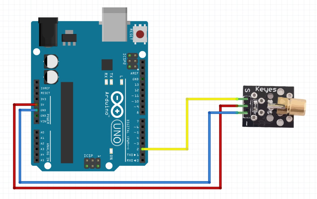 الموديل فيه مقاومة داخلية لحماية الليزر من التلف، ويمكن استخدامه بسهولة مع الأردوينو بدون أي قطع إضافية.